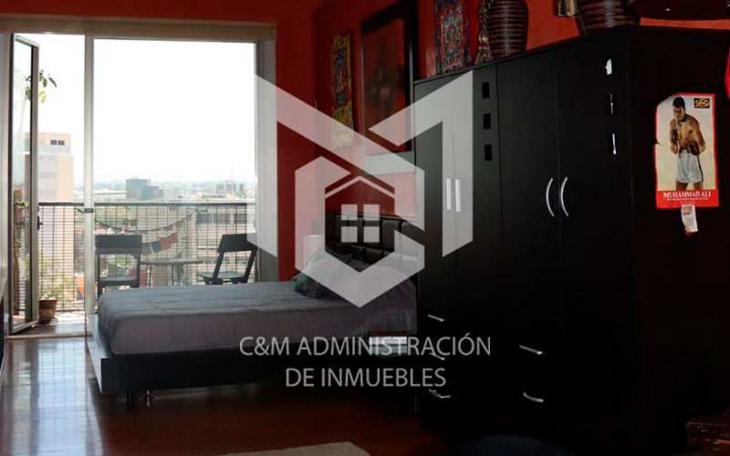 Renta un exclusivo loft de 47 m² totalmente amueblado, con acceso a gimnasio, spa, carril de nado, biblioteca, sala de juntas y áreas verdes.