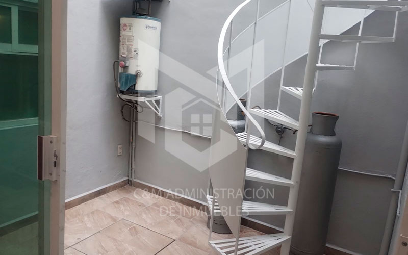 Renta casa dúplex en Miguel Hidalgo con dos recámaras con clósets, sala y comedor amplios, baño completo con tina de hidromasaje y cabina de regadera, además de medio baño para visitas.