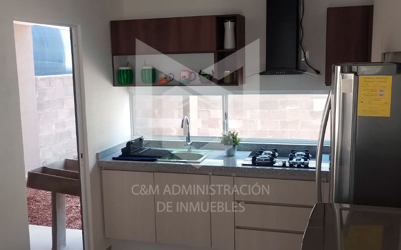 Renta hermosa casa de dos pisos en privada, con dos recámaras, un baño completo y medio baño para visitas, además de sala y comedor amplios con conexión abierta hacia la cocina totalmente equipada.