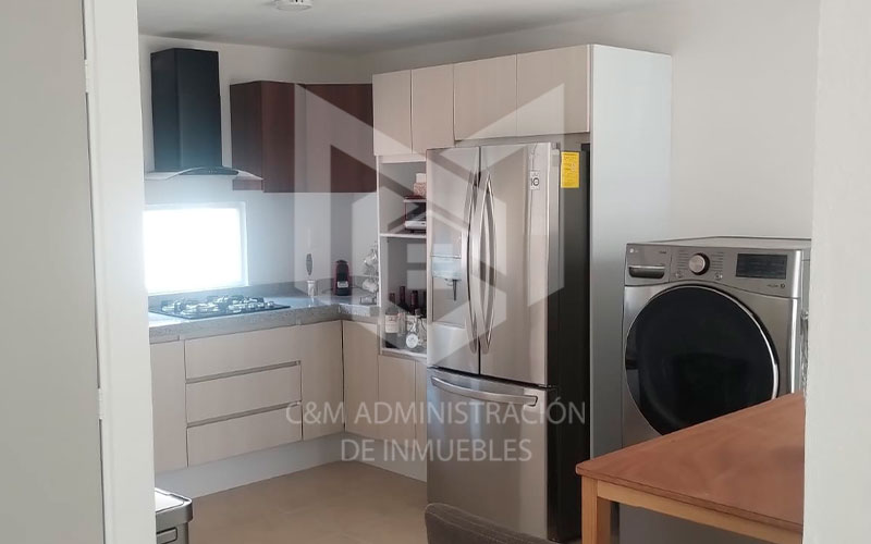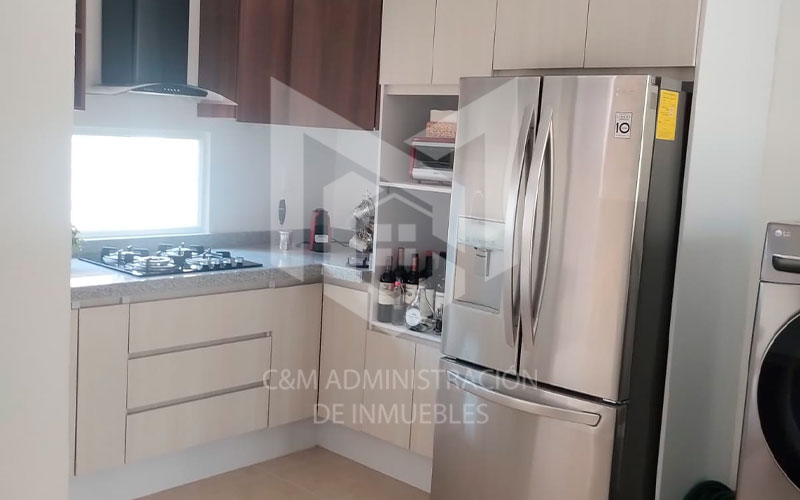 Disfruta de cocina abierta semi equipada con cocineta y estufa de gas, área de lavado con instalación para lavadora automática, área de tendido y terraza con opción a ampliar el espacio.